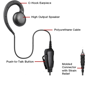 C hook earpiece with PTT DMEM-3327-M16/SC